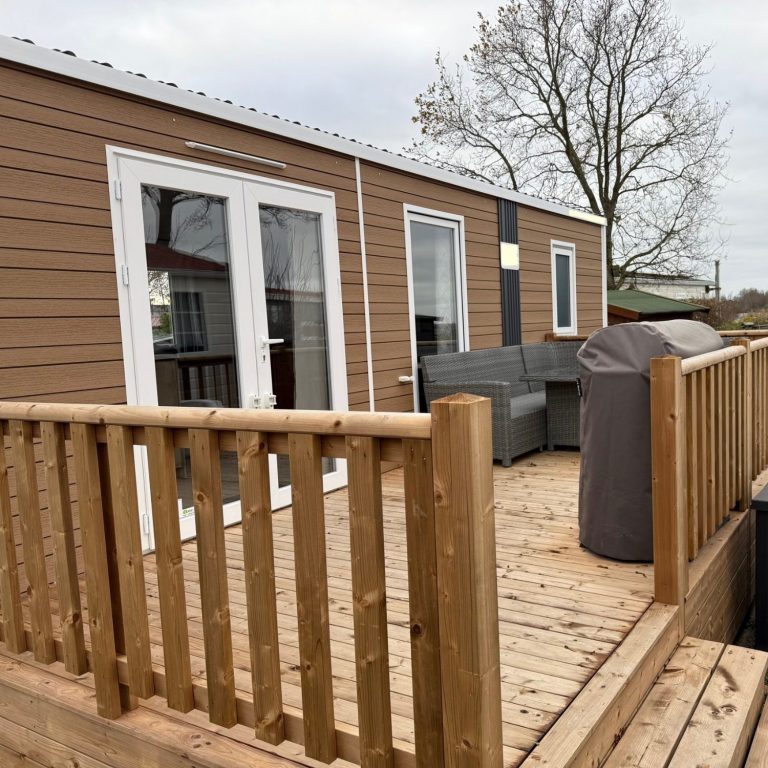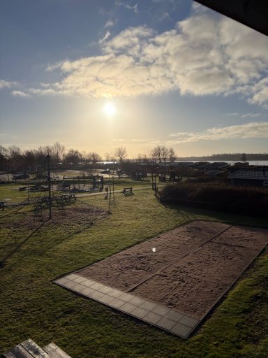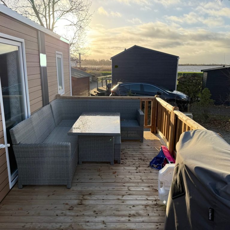 Die Terrasse des Chalets ist der perfekte Ort, um einen unvergesslichen Abend zu verbringen. Hier kann man gemütlich verweilen, während die Sonne am Horizont untergeht. Der Blick von der Terrasse auf das Wasser und die umliegende Natur schafft eine Atmosphäre der Entspannung.